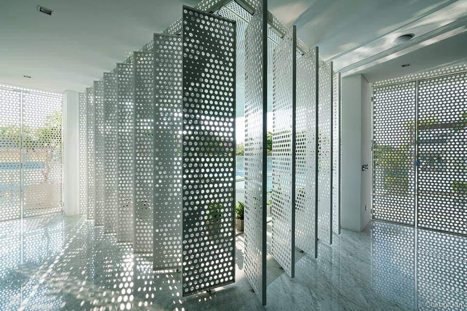 Đặc biệt với những ngôi nhà hướng nắng, nhà mặt phố. Thì nhôm đục lỗ là vật liệu tuyệt vời giúp cản nhiệt, khói bụi và tiếng ồn bên ngoài.